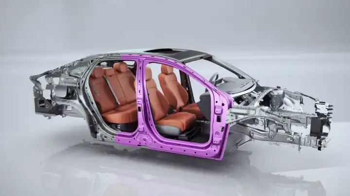 整车采用潜艇级笼式车身,高强度钢占比达70%,最高抗拉强度超1500MPa,车身扭转刚度高达26000N·m/deg,奠定驾驶安全基石。前机舱配备“B”型截面超高强钢防撞梁与240mm超长吸能盒,后防撞梁采用“C”型超高强钢+200mm渐变吸能盒,结合S形两折弯吸能设计与同级独有发动机下沉技术,在碰撞中有效引导能量传递,保障乘员舱完整。
