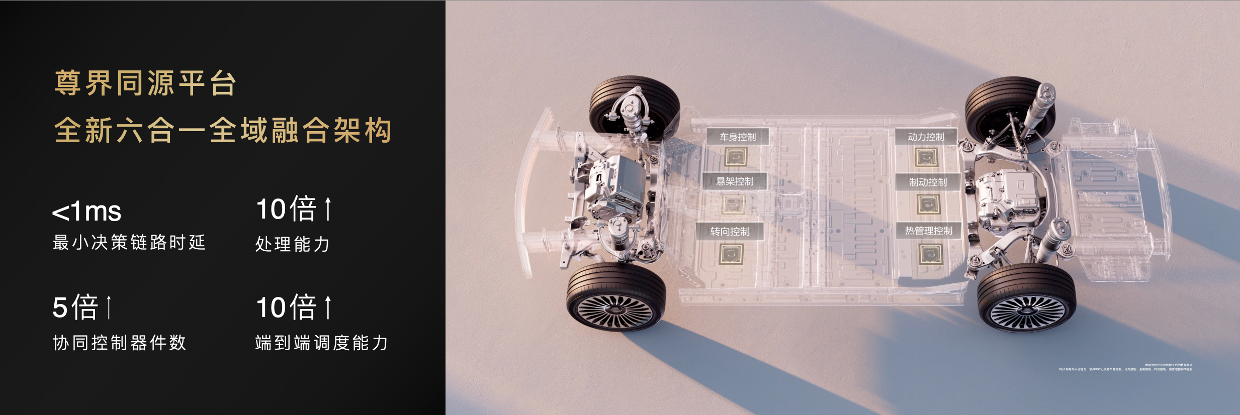 以智能驾驭性能,新款享界S9升级全新一代华为途灵平台,让豪华更从容。新车采用前独立双叉臂,后五连杆悬架设计,标配5档可调的智能空气悬架,全新连续可变阻尼减振器,操控与舒适兼得,机械质感媲美百万豪车;升级尊界同源的全新六合一全域融合架构,决策时间更短,调度能力更强,搭配华为乾崑智驾ADS 4、时空智能悬架网络、HUAWEI XMOTION Control智能车身协同控制及HUAWEI DATS动态自适应扭矩控制等多项技术的协同配合,如同赋予了新款享界S9底盘“明亮的眼睛”、“聪明的大脑”以及“强壮敏捷的四肢”。在出行中,车辆提前路况预瞄,路况空间模型分辨率提升100倍,并通过高效智能思考,精细化协同控制,紧急避障精准操控、颠簸路、坑洼路游刃有余。在中汽中心麋鹿测试中,更是取得了84.1km/h的优势成绩,为用户带来颠覆性的操控性能。