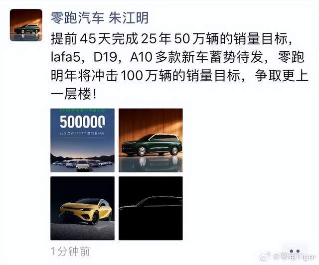 从营收194.5亿元、净利润1.5亿元的季度表现,到提前完成50万台年度目标、全年冲击60万台的销量预期,再到2026年剑指百万的雄心,零跑的每一步都走得扎实有力。