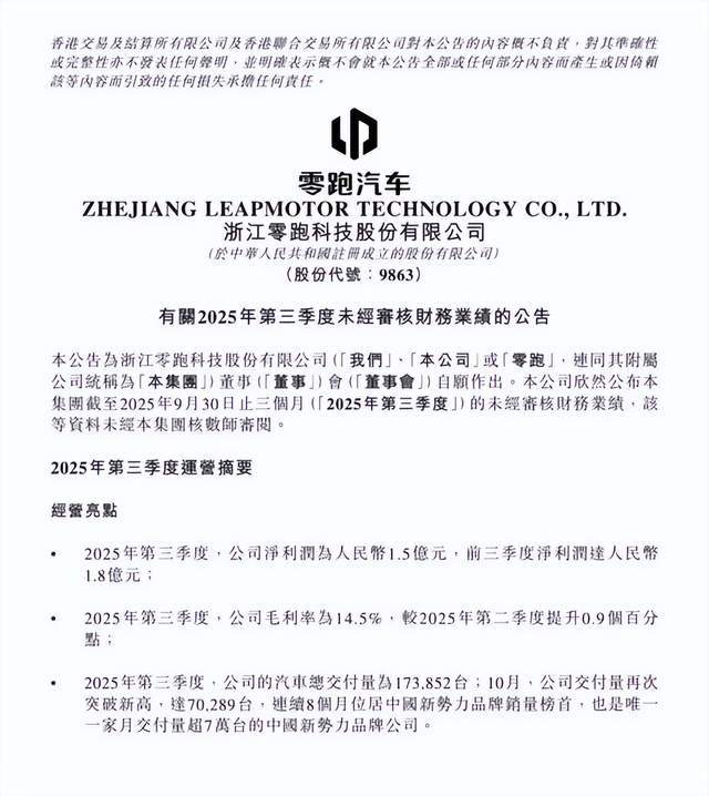 零跑汽车2025年三季度的业绩,不仅是一组漂亮的数据,更是中国造车新势力发展的一个重要里程碑。