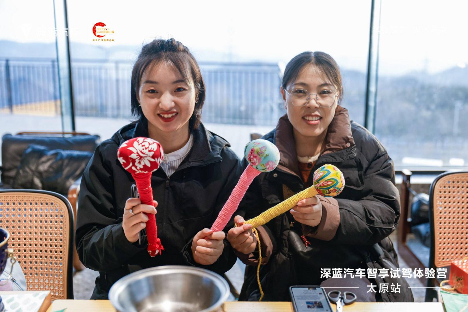 活动现场特别设置的“匠心手作体验区”吸引了众多嘉宾参与。在专业老师的指导下,嘉宾们亲手制作养生锤,在细致的缠绕过程中感受传统手作的魅力,体现了深蓝汽车打造有温度用户体验的用心。