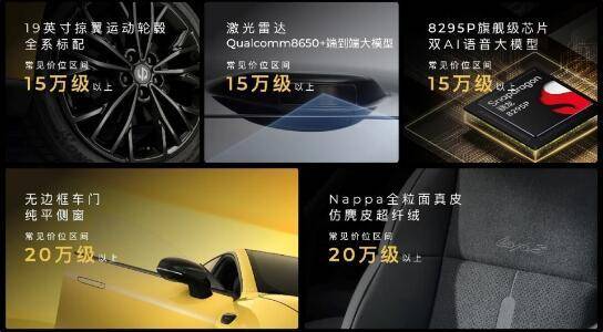 新车提供3款质感内饰,速域紫时尚动感,驰影灰格调沉稳,竞速灰则采用5.54m²仿麂皮超纤绒+Nappa全粒面真皮拼接,座椅上的"延伸赛道"纹理与"Lafa5"专属字标烫印,尽显超跑级座舱质感。Leap Sound12扬声器音响系统配合无麦K歌功能,带来舞台级听感,座舱秒变私人LiveHouse。1.02㎡超大全景天幕搭配智能电动遮阳帘,以及多达25处的储物空间和435L的后备箱容积,则充分体现了对用户日常实用需求的深度洞察。