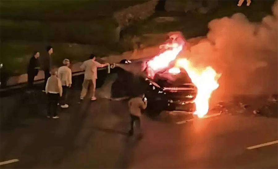 接下来的几个月里,类似的事故仍在不断发生······4月初,广东湛江一辆小米SU7与电动自行车相撞,导致电动车上的两人当场死亡,而小米车主却在事发后选择逃逸。10月中旬,成都街头一辆小米SU7在碰撞后起火燃烧,现场群众试图营救却因车门无法打开而束手无策,最终只能眼睁睁看着驾驶员被烈火吞噬。11月,江苏常州街头发生令人揪心的一幕,一辆小米SU7在故障拖车后突然起火,熊熊火光中车辆最终化为灰烬。