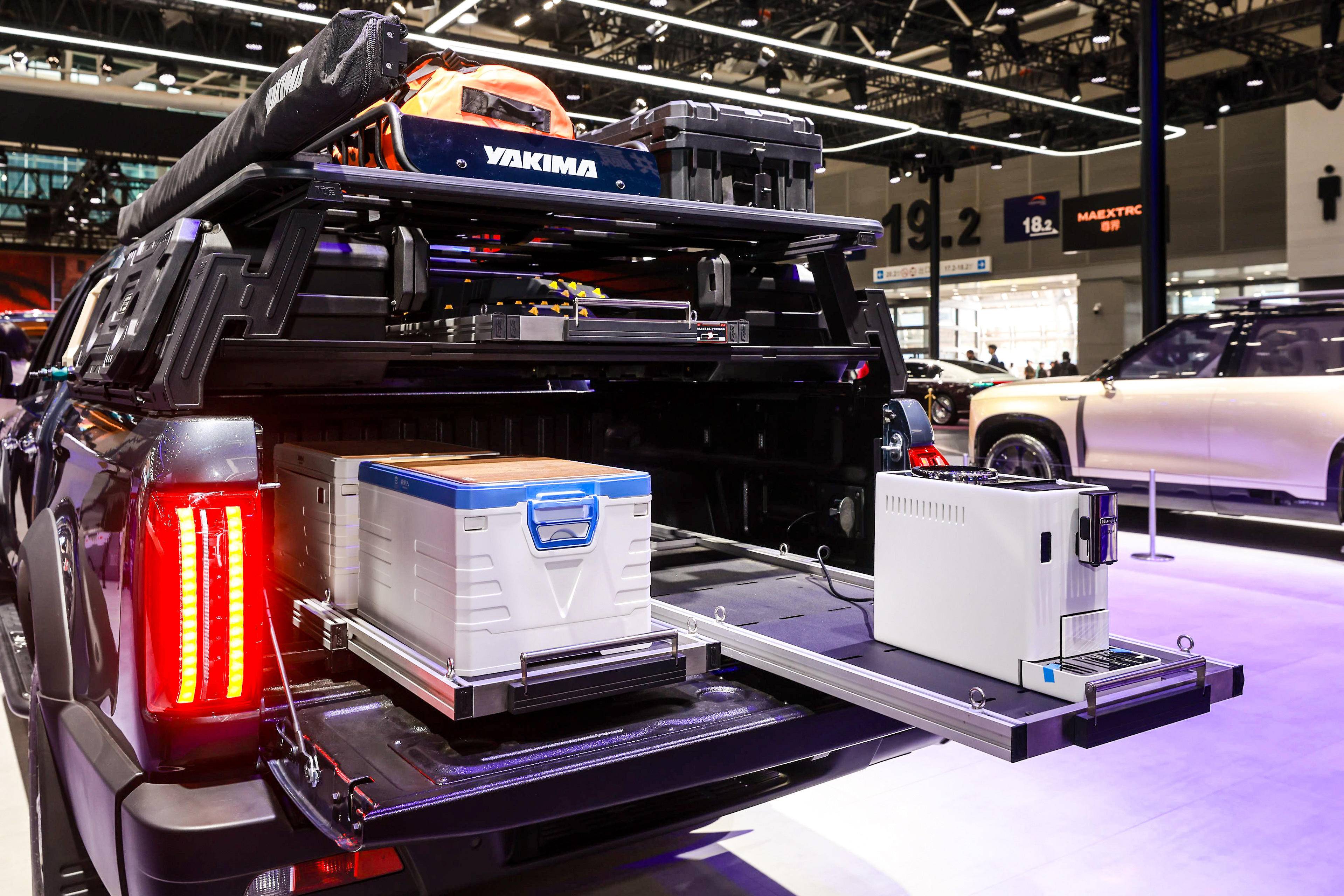 如果说千扭动力是江淮悍途PHEV的“硬实力”,那么展车上加装的咖啡机与拓展天幕,则是其“软实力”的极致表达,将“带电撒野”理念具象化。越野穿越到目的地后,于天幕下亲手制作一杯现磨咖啡,瞬间将狂野与休憩无缝衔接,实现从“征服自然”到“融入自然”的无缝切换。