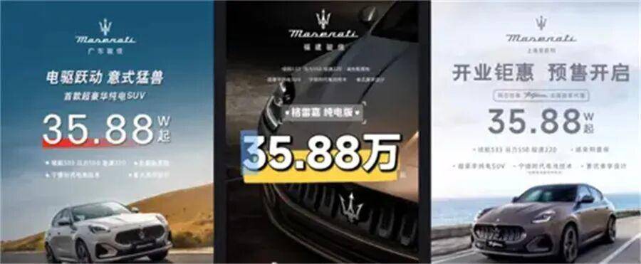 【文/财圈社&道哥说车 张浅】最近,一张“玛莎拉蒂纯电SUV仅售35.88万元”的海报,在车友群和社交平台上引发轰动。要知道,这款名为Grecale Folgore的车型官方指导价高达89.88万元,如今的经销商报价意味着价格直接“腰斩”,相当于打了四折。