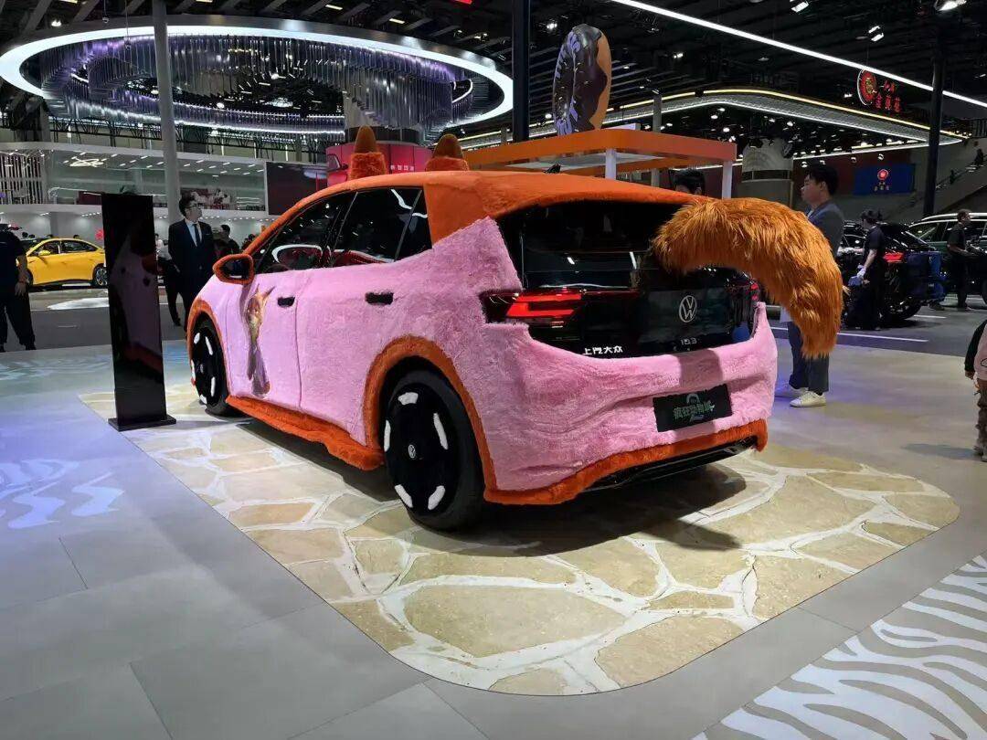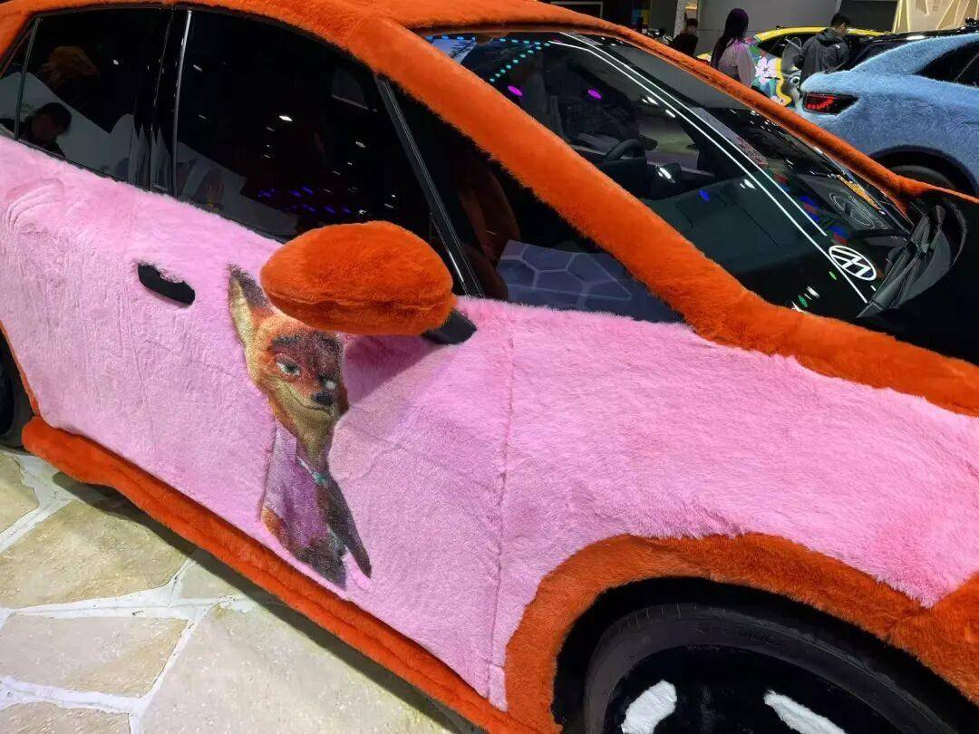 大众品牌展台的《疯狂动物城2》定制展车成为现场焦点。作为大众汽车与该动画大片全球合作的承接方,上汽大众此次带来的定制展车深度融合电影元素,车身采用尼克狐专属橙棕渐变涂装,车门把手雕刻“Nick Wilde”签名标识,轮毂中心嵌入迷你狐爪徽章,进气格栅镀铬饰条复刻电影城市天际线造型。内饰方面,座椅头枕绣有尼克卡通轮廓,中控屏开机呈现尼克与朱迪经典同框画面,氛围灯可切换“雨林区”“冰川区”等主题光效,全方位营造沉浸式体验。