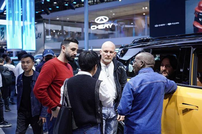 图为海外友人参观2025广州车展奇瑞展台