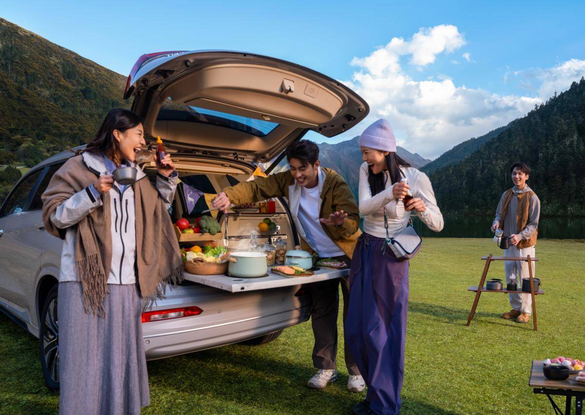 其中,“豪华主卧”90秒一键充气床垫搭配隐私帘,瞬间将后排变身“移动头等舱卧铺”,老人孩子累了就能躺平休息;“山野厨房”双电磁炉+集成餐厨桌,走到哪都能实现“火锅自由”;“四季茶室”3秒速热饮水机支持5档水温调节,随时随地能够捧上一杯热茶;“多功能客厅”隐藏式投影仪与幕布,停车休息时能全家看剧,让返乡路不再枯燥。