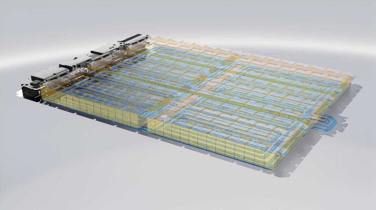 在『导』的层面,巨鲸电池平台搭载了全包裹大面液冷方案。