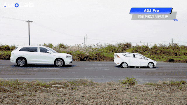 比如我们前方或后方都有车,距离我们2米左右。当驾驶员踩着加速踏板要撞车了,系统会勒紧安全带,语音助手大声播报让驾驶员“抬脚”,抬脚后自动挂P档驻车。
