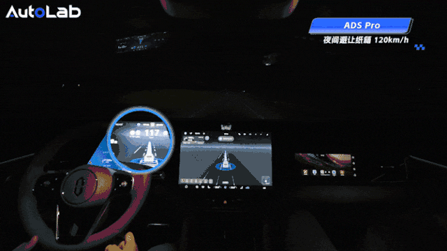 官方表示,有了激光视觉Limera,对小目标的识别能力大幅提升,夜间高速状态下面对前方30cm的小纸箱,也能做到提前识别并绕行。