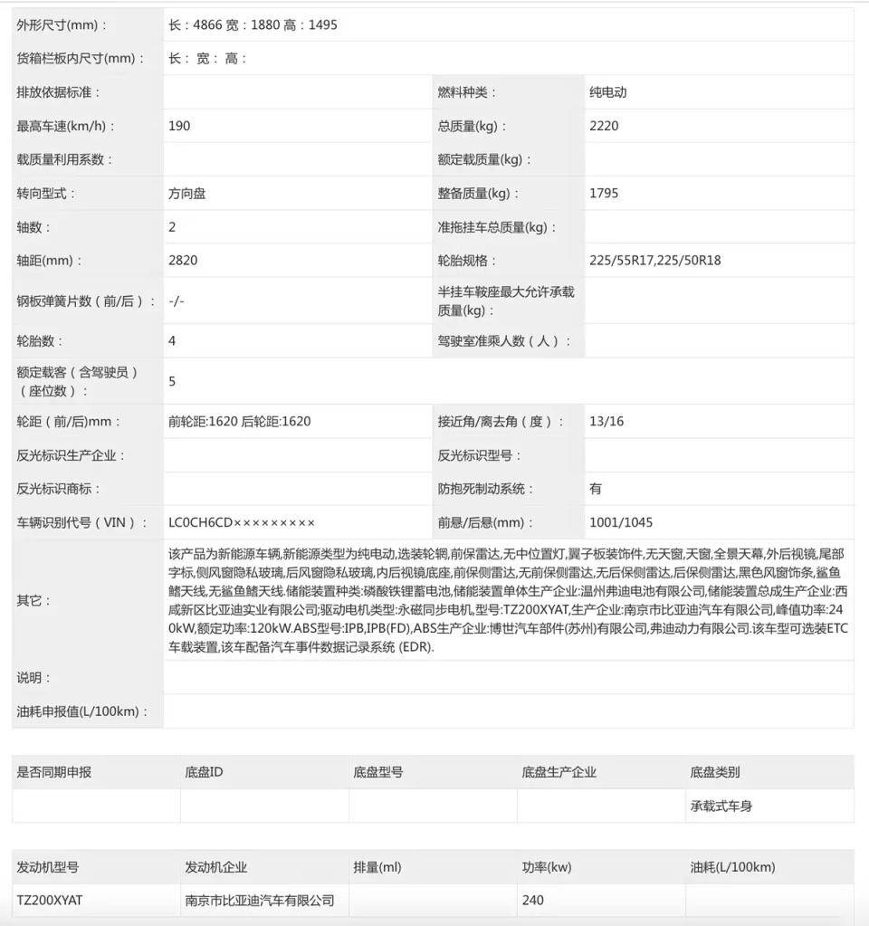 从申报信息来看,秦MAX将提供峰值功率240kW(326马力)和120kW(163马力),目前还不清楚这两种动力数据,是因为电机功率的不同,还是双电机四驱和后驱的区别,不管怎么样,326马力的动力数据,对于一款不到4.9米的轿车产品来说,已经算是比较强势的了,需要电机和电池的充分配合。