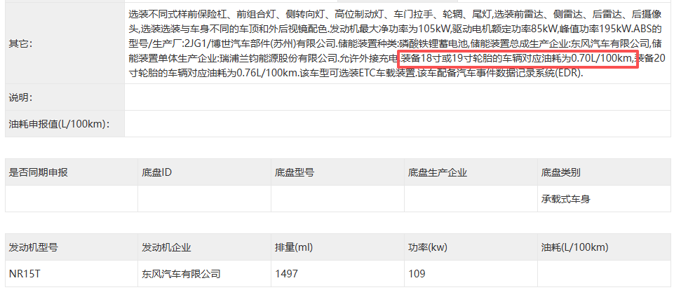 动力上,新车的增程版车型将搭载1.5T增程器,最大功率为109kW,驱动电机的总功率为195kW。电池组则是提供有福鼎时代和瑞浦兰钧两个品牌可选。同时,增程版车型的百公里最低油耗也降到了0.7L/100km。