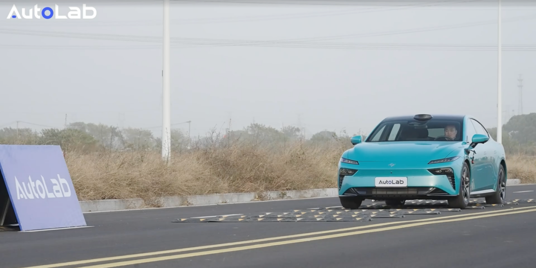 在底盘测试上,我们用专业的传感器读取到东风奕派eπ007+在经过连续减速带组成的颠簸路时,底盘垂向最大加速度为1.033g。