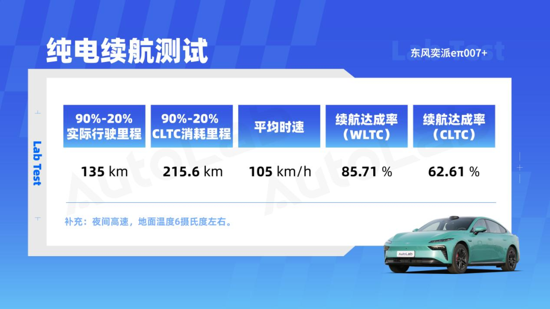 比如《LAB测试》最近测到的东风奕派eπ007+,虽然没有小米SU7那么高的流量热度,但自身产品力同样经得起检验。