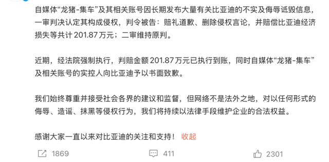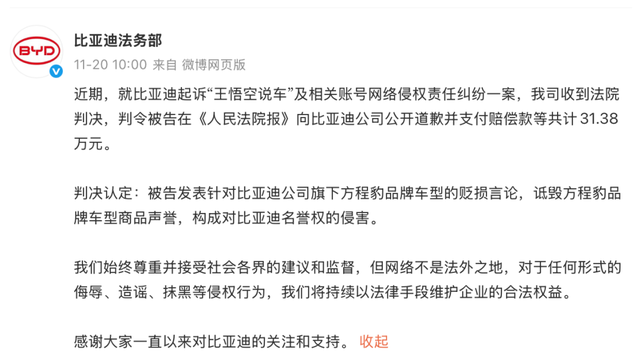 话音刚落,我看有些人就不服了,不是说要承受委屈吗,那怎么比亚迪法务部最近还起诉了一批自媒体。