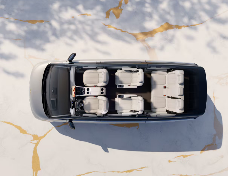 具体空间参数表现亮眼:第二、三排纵向空间均超过1米,第三排坐垫宽度达1290mm,靠背最大调节角度137°,并提供180°躺平选装功能,有效改善了第三排乘坐体验,实现“全员平权”的空间设计理念。后备箱容积达1100L,可容纳15个20寸登机箱,满足家庭出行的储物需求。