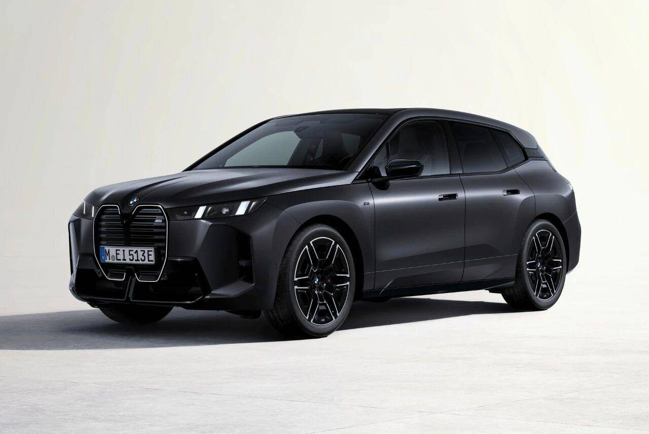 更有意思的是宝马的小心思,首次给宝马iX加了M运动套装,前脸分流器抄了新M5的设计,尾部做了黑化扩散器,连23英寸轮毂都是专门为电动车型优化的空气动力学样式。