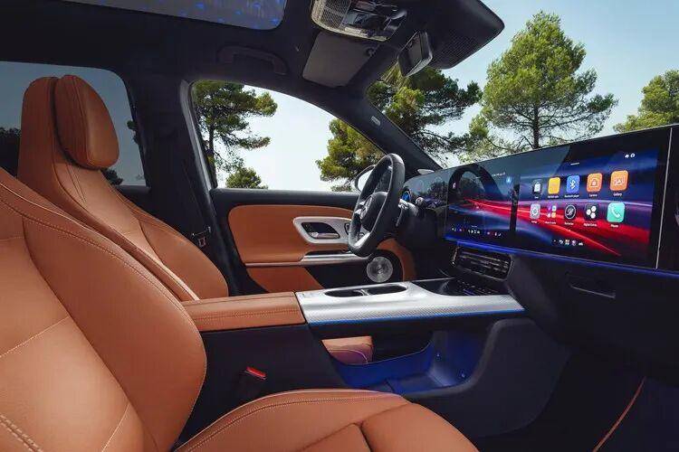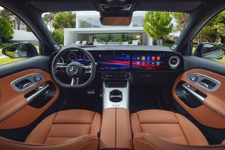 作为换代版本,全新GLB换装了家族最新的内饰风格,采用10.25英寸全液晶表盘+14英寸中控屏+14英寸副驾娱乐屏组成的连屏设计,屏幕贯穿了整个中控台,科技感拉满。车机使用第四代MBUX车载信息娱乐系统,集成微软、谷歌双AI技术,并且搭载基于ChatGPT4o大模型开发的MBUX虚拟助手。