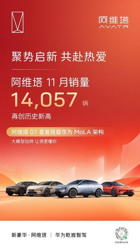目前,阿维塔已完成"三年四车"产品布局,形成纯电与增程双动力全覆盖的产品矩阵,全面覆盖20万至70万元价格区间的主流豪华市场。截至目前,阿维塔已赢得超过22万用户的青睐,在刚刚过去的11月,单月销量达14,057辆,同比增长21%,已实现连续9个月销量破万,增长势能持续强劲。同时,阿维塔正加速推进全球化布局,目前已成功进入38个国家和地区,赢得了包括不丹国王、卡塔尔皇室在内的全球用户认可。