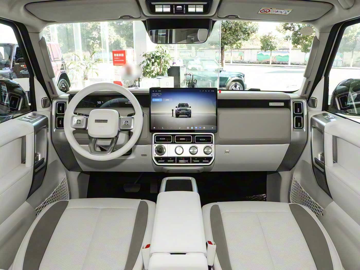 下面一张图可以看到,新车左后侧有加油口,尾部还有排气,车窗上还贴着增程字样,这也意味着新车是增程动力。