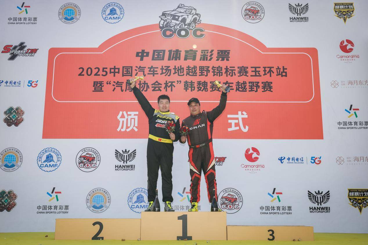 12月7日,中国体育彩票2025中国汽车场地越野锦标赛(简称:COC)玉环站暨“汽摩协会杯”韩魏赛车越野赛迎来万众瞩目的决赛日。经过前几日的比拼,各组别强手蓄势待发,在韩魏赛车玉环汽车运动公园展开全天最激烈的终极争夺。紧凑的节奏、密集的战术圈选择、贴身的车身对抗,让今日赛道从第一声引擎轰鸣开始就火药味十足。最终,K-MAN(中国)车队的赵向前凭借出色发挥荣膺汽车组冠军,也斩获汽车组的“飞车王”;Polaris北极星车队的陶冶在UTV组夺得全场第一,也把该组“飞车王”揽入怀下。