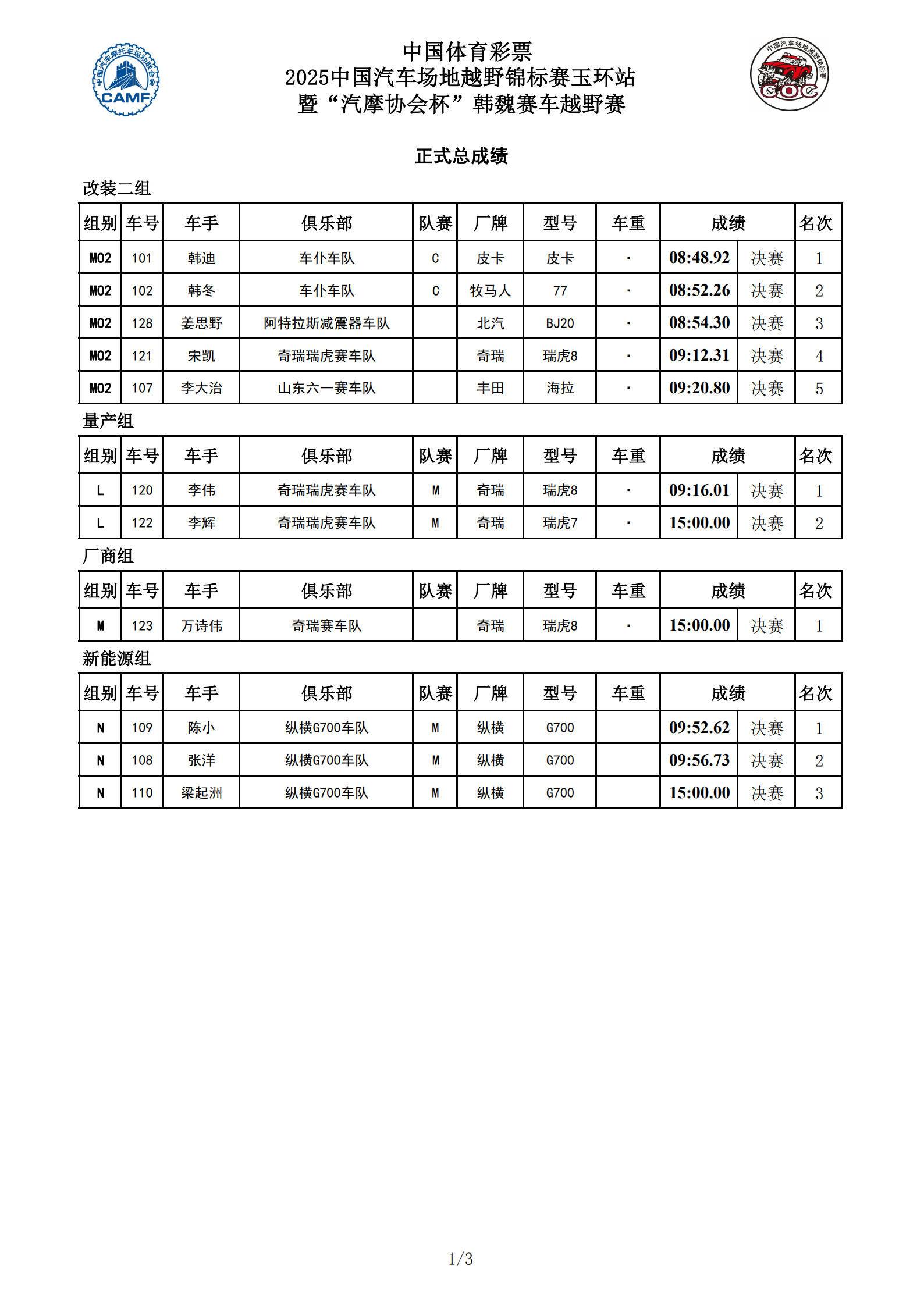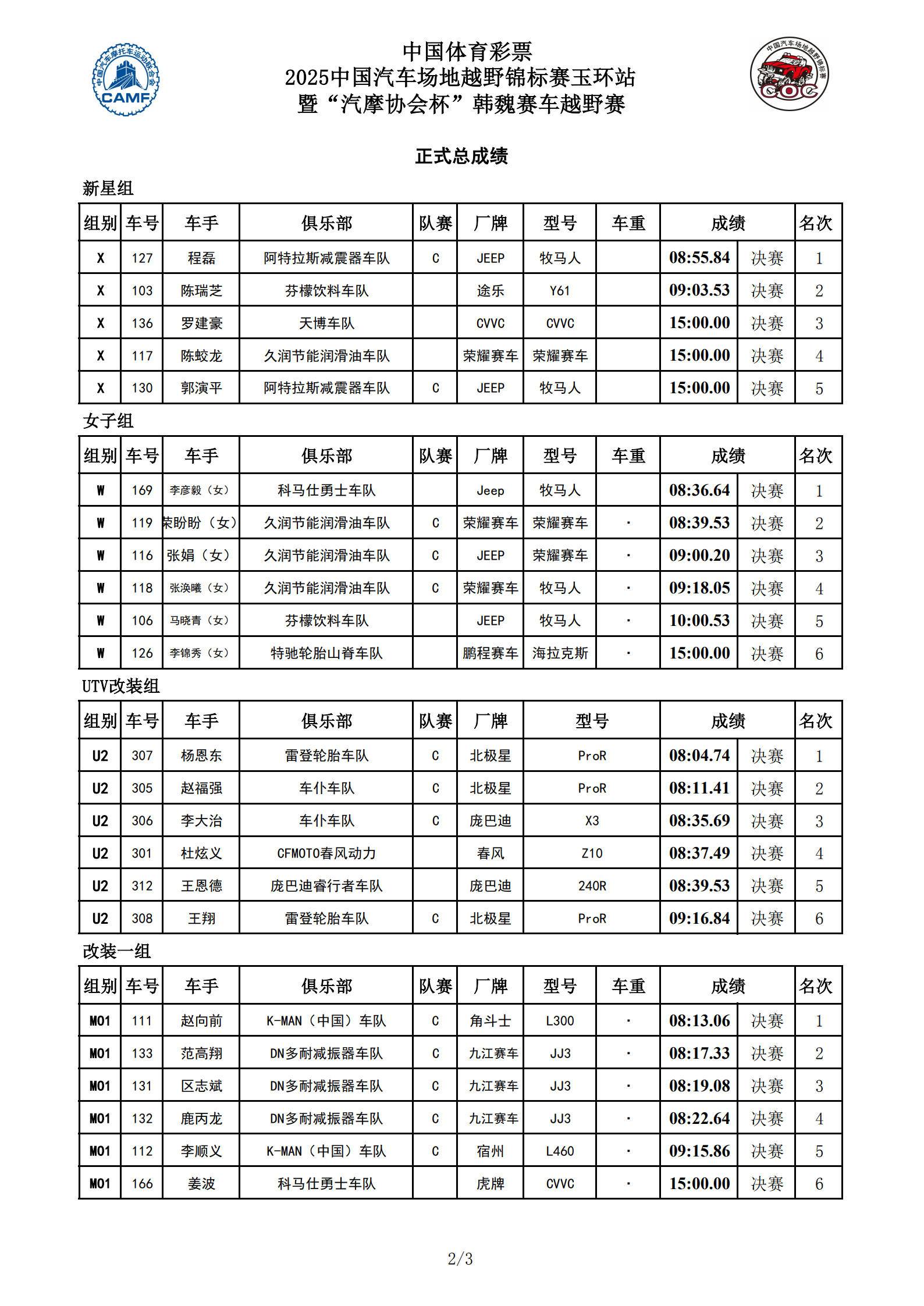 最终,杨恩东凭借全程硬朗发挥,以08分04秒74拿下冠军;赵福强以08分11秒41获得亚军,他的队友306号李大治则在稳扎稳打下以08分35秒69收获第三名。UTV改装组本场比赛不仅展现速度,更呈现战术、对抗与耐性的极致考验,堪称本日最具戏剧性的组别之一。
