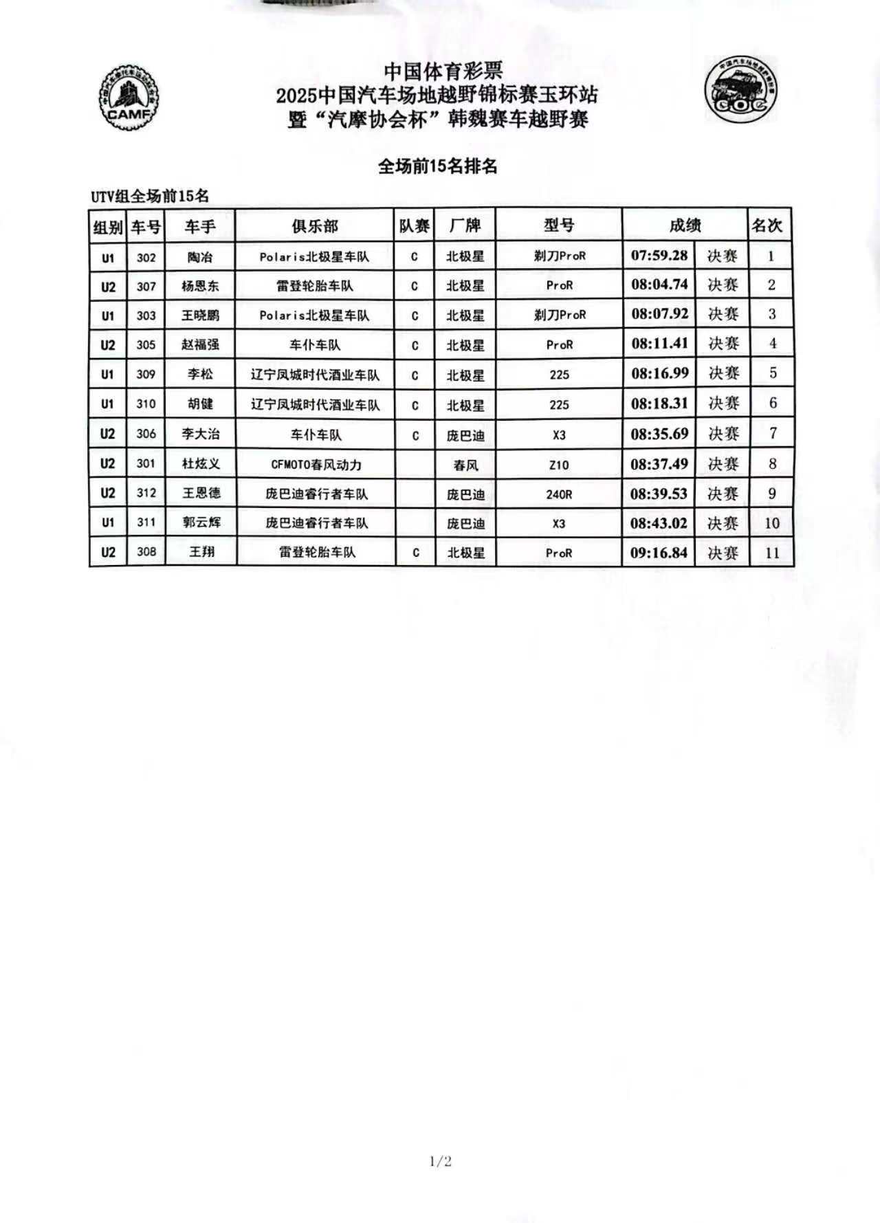UTV量产组:陶冶一骑绝尘 北极星车队包揽前二