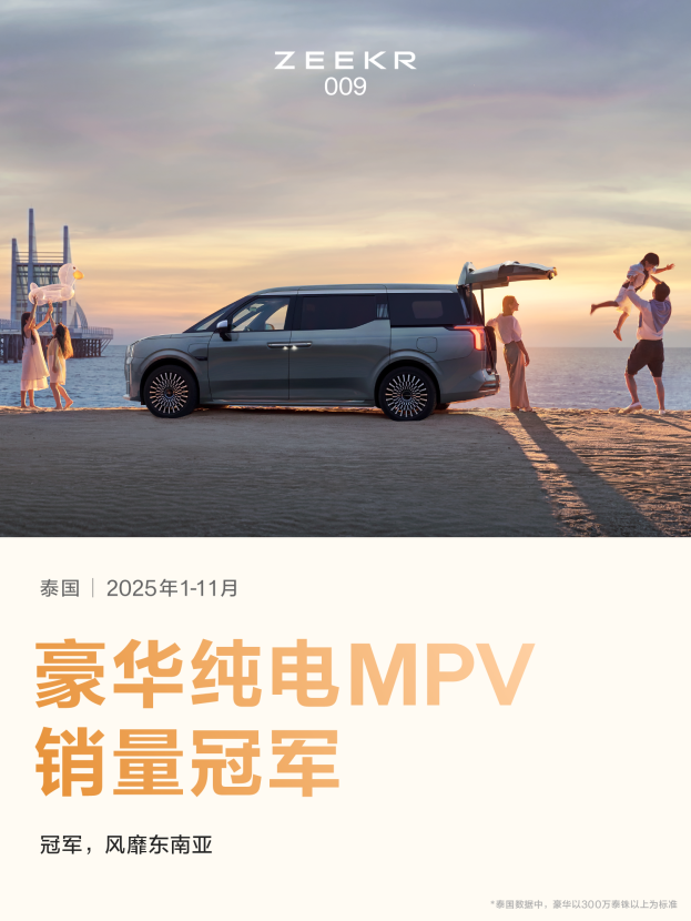 据悉,今年1-11月,极氪已成功登顶埃及纯电品牌销量冠军。此外,极氪还稳居哈萨克斯坦豪华纯电市场第二,跻身巴西纯电品牌销量前三甲。旗下车型极氪7X开启交付后,连续3个月蝉联中国香港市场中型SUV销冠,登陆澳洲首周订单破千,并成为澳洲市场11月6万澳币以上SUV销量冠军。极氪009则稳居1-11月中国40万以上MPV销量冠军、中国香港MPV销量冠军,并在泰国和马来西亚获得豪华纯电MPV销量冠军。