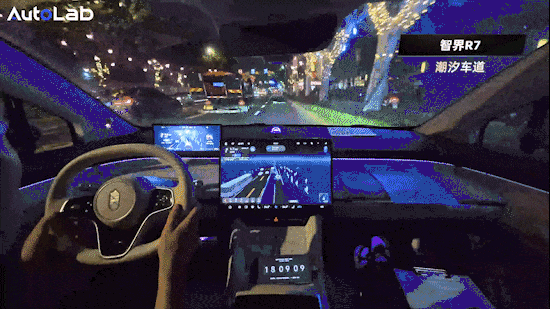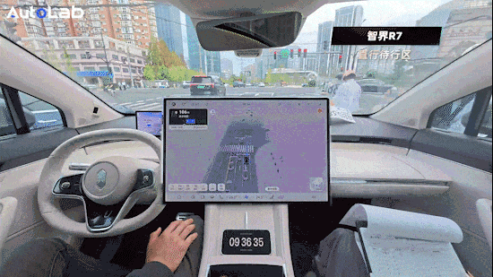 蓝山这个版本还没上VLA,不具备功能;智界R7认识地面上的直行待行区,但即便有文字提示也不会主动进去,驾驶员给了脚加速后才会开进去。