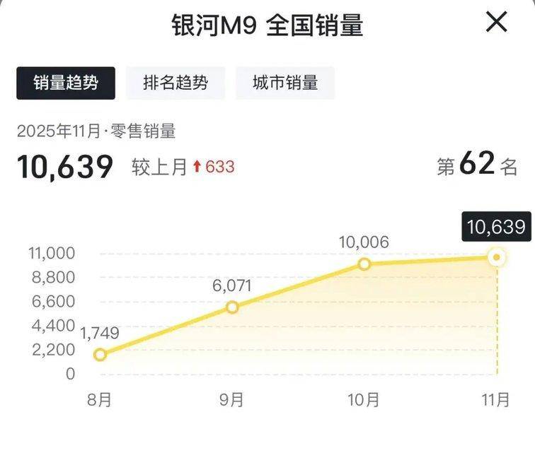 第一名,银河 M9(售价18.38万元-24.88万元)