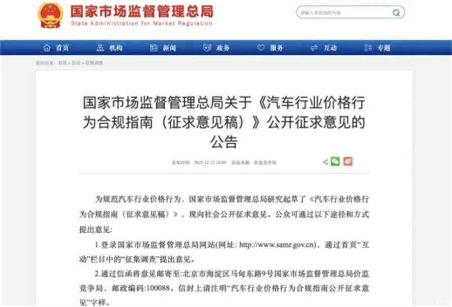 这次,国家市场监督管理总局发布公告,就《汽车行业价格行为合规指南(征求意见稿)》公开征求意见,本质上是在做一件很重要的事:把车市里那些“大家都懂但没人明说”的价格边界,写清楚、落到条款上——从生产端到销售端都覆盖。