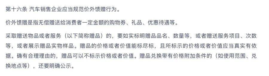 很多“权益”其实是价外馈赠:礼包、保养、精品、延保、油卡、积分券……听起来免费,但常见的坑是“兑换有附加条件/价值说不清/没写进合同”。征求意见稿对“价外馈赠”要求更细:赠品品名数量要如实标示,兑换带附加条件的要明确公示,能标尽标且要有依据。