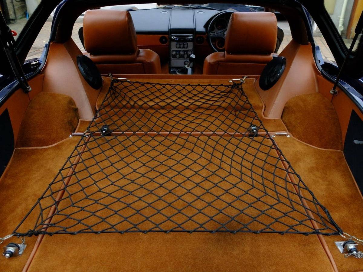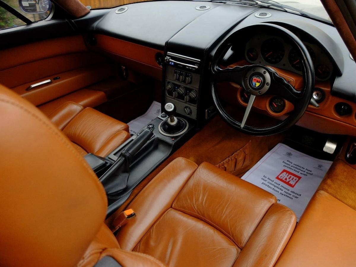 Fighter最引人注目的无疑是那台源自道奇蝰蛇的8.0升V10发动机。布里斯托对其进行了深度改装,换装了自家凸轮轴以改变动力输出特性,并将发动机后置于前轴之后,实现了48:52的前后配重比。经过调校后,这台V10发动机可输出525马力的最大功率和698牛·米的扭矩,布里斯托声称最高时速可达338公里/小时,0-100公里/小时加速仅需约4秒,且一挡即可完成破百。六速手动变速箱虽然沿用蝰蛇原件,但布里斯托重新调整了齿比,六挡时每1000转对应64公里/小时的车速,极为适合高速巡航。车身采用典型的布里斯托手工制作工艺,翼子板、车顶和引擎盖为铝合金,车门和尾门则采用碳纤维复合材料。独特的鸥翼式车门和泪滴形玻璃舱设计灵感源自航空器,风阻系数仅为0.28。