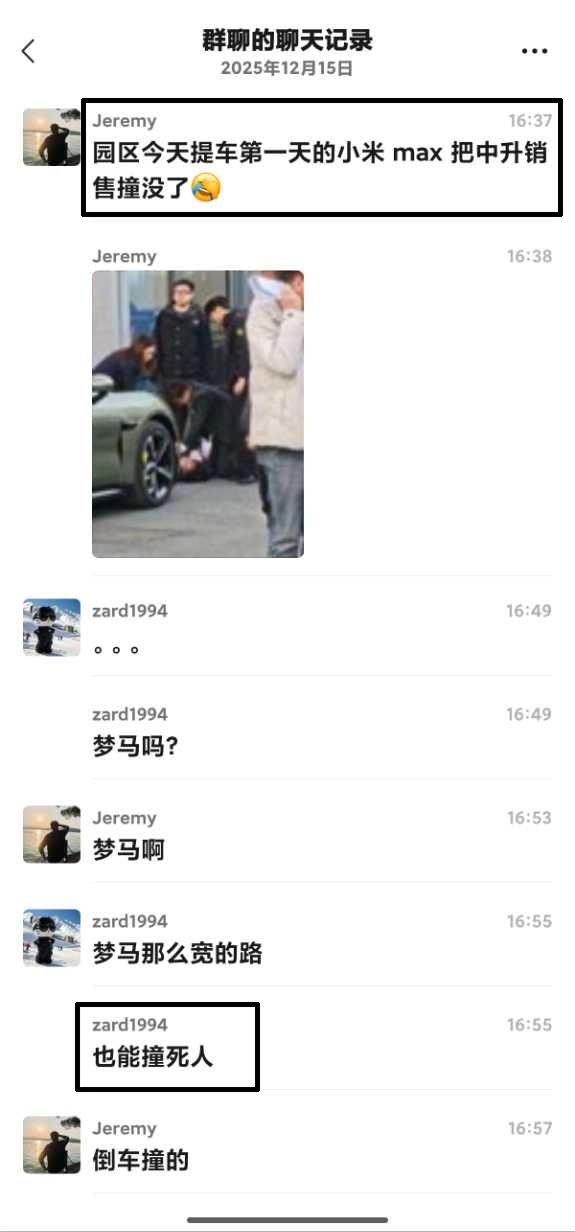 2025年12月15日下午,杭州钱塘区梦马汽车小镇小米交付中心园区内发生一起车祸。肇事方为新提未上牌小米某MAX车型车主,车辆行驶至狭窄过道的时候,倒车过程中忽然加速,左前轮部分撞击到夏某导致其受伤昏迷。