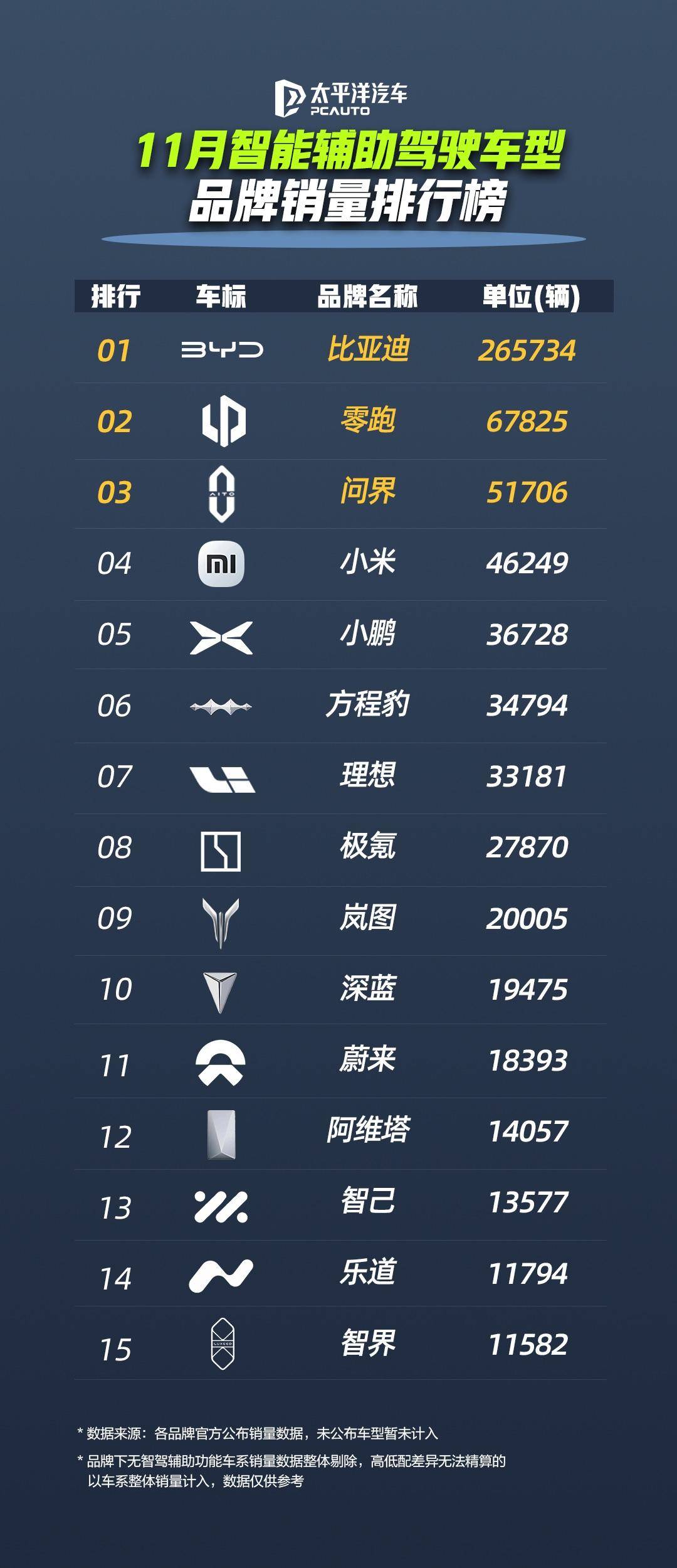 【华中汽车网】近日,比亚迪公布了其搭载天神之眼辅助驾驶系统的车型在11月的销售数据,全月销量达311267辆,继续引领市场。其中,比亚迪王朝与海洋系列贡献265734辆,方程豹、腾势、仰望等高端及个性化品牌亦表现稳健,共同构筑了比亚迪在智能驾驶领域的强大产品矩阵。