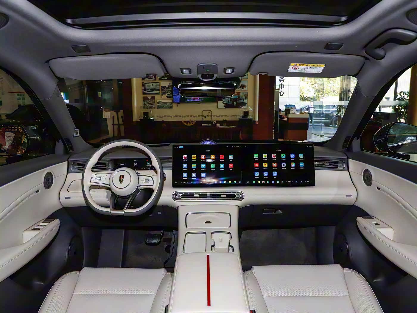相比于车头的硬派,尾部反而偏圆润,这样的反差很有意思。当然,尾部最大的看点当属尾灯了,它像是横过来的红旗LOGO,夜间辨识度不用多说。配色方面,新车拥有星河黑、雪耀白、揽月银以及苍夜山海四种配色可选。