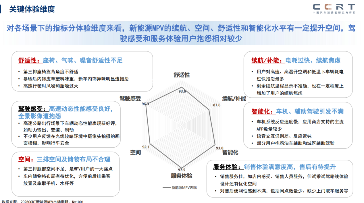 尤为重要的是,场景痛点已成为产品创新的核心机会点。报告明确指出了当前产品的普遍软肋:高速能耗、电耗控制不佳、第三排乘坐的长期舒适性不足、语音系统对复杂指令和方言的识别率偏低。这些用户集中反馈的问题,恰恰是车企实现差异化创新、提升用户忠诚度的关键突破口。