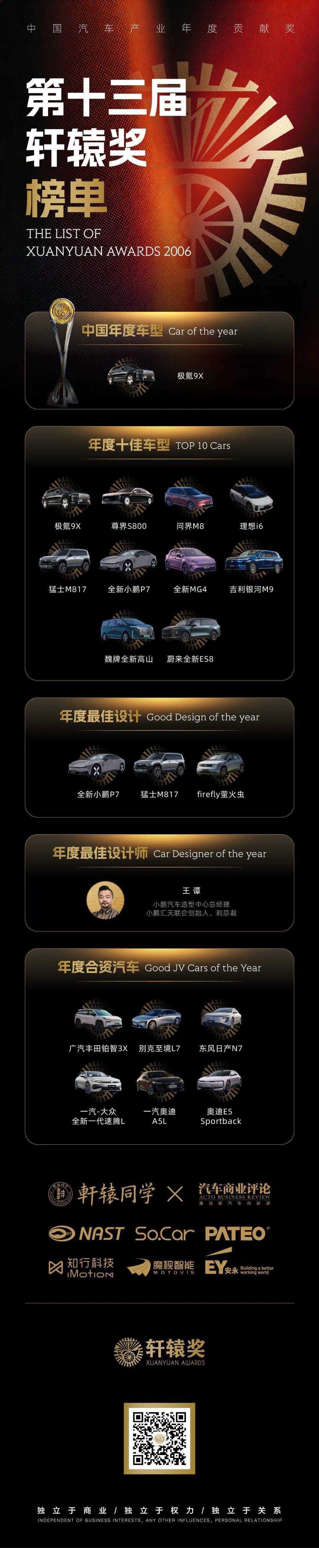 站在产业变革的全新起点,轩辕奖将持续依托多方合作伙伴的专业赋能,以更为严谨的评测体系,坚守独立于商业、独立于关系、独立于权力的核心原则,在中国汽车向新能源和智能化转型的浪潮中,贡献更多建设性力量。