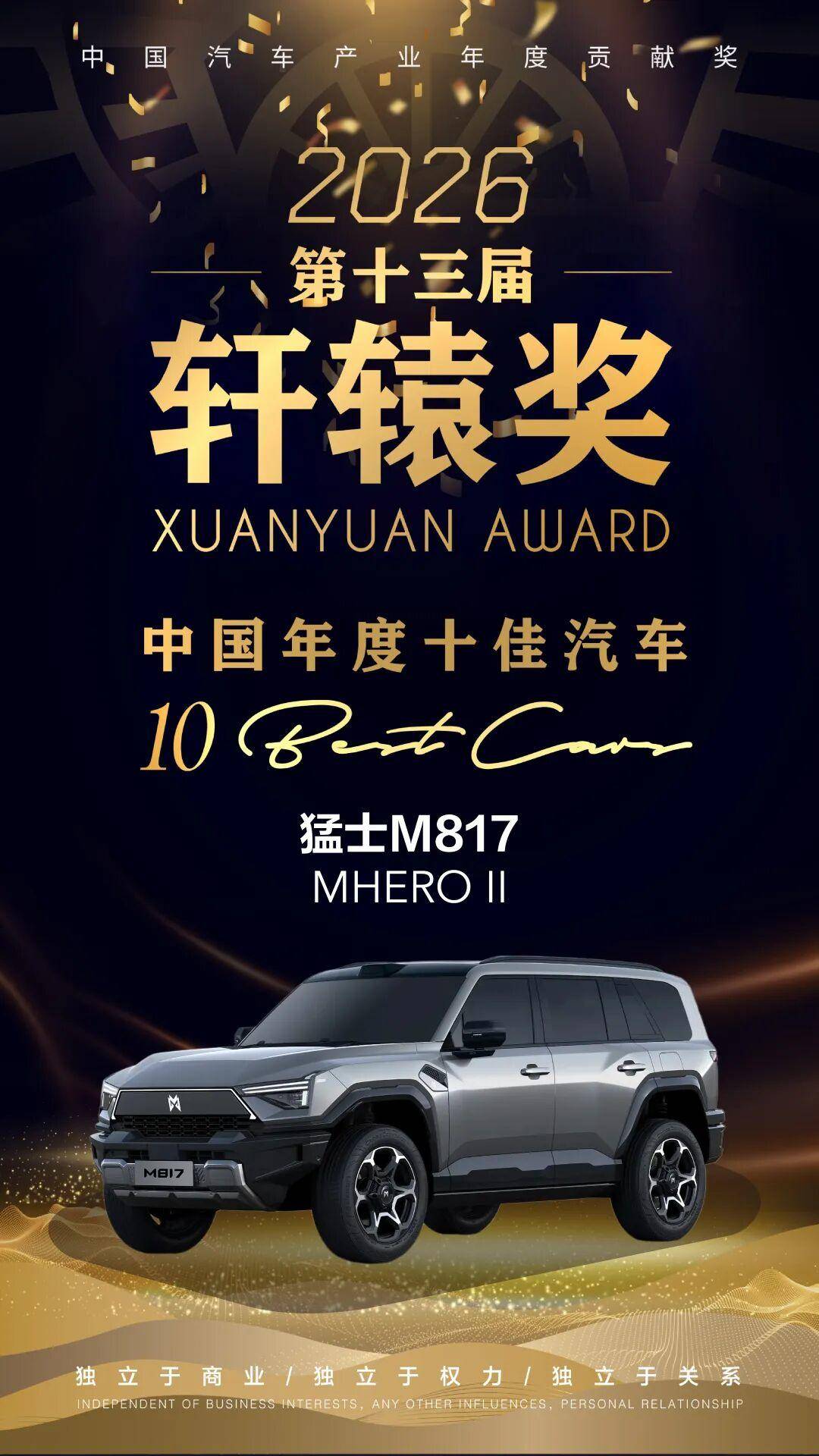 感谢轩辕奖给予的认可与机会,猛士M817始终深耕智能越野赛道。该车出圈的核心在于猛士汽车硬核的越野实力,与华为乾崑智行的前沿科技强强联合,实现了智野双绝。未来,猛士汽车将持续推出优质产品,与行业伙伴携手助力中国汽车产业发展。