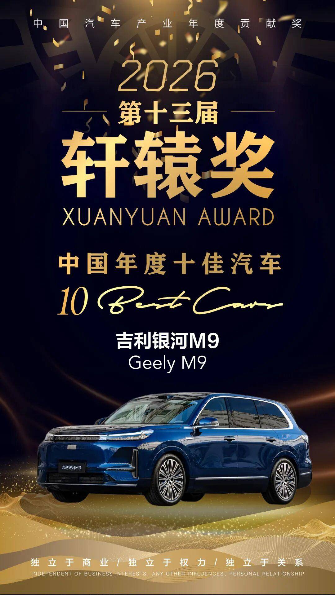 感谢轩辕奖评委搭建专业评价平台,当下消费者购车前易接触碎片化信息,此类全面专业的车型评价愈发稀缺。吉利银河M9作为推动品牌百万销量的旗舰产品,它的获奖对品牌发展至关重要。未来将以此为勉励,持续优化产品、推出更优车型。此外,吉利全球全域安全中心已于12月12日启幕,银河品牌将依托自身技术实力,以安全为第一要务打造新能源产品。