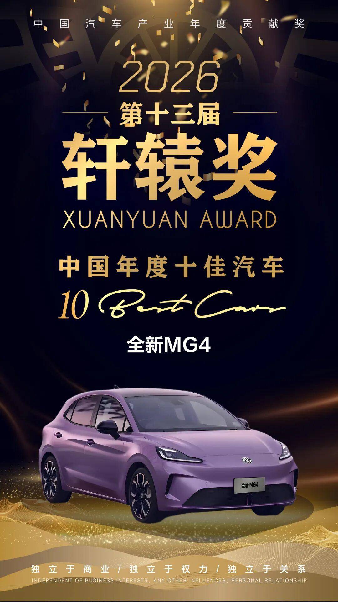 获奖理由:全新MG4深度传承品牌运动底蕴,既在外观设计上凸显运动风格,更通过运动化底盘调校重现 “小钢炮” 驾趣。它在方寸之间构建出超乎想象的灵动空间,并拥有简洁而不失质感的内饰,丰富而实用的配置。其越级搭载的组合辅助驾驶与高性能芯片,让全新MG4彻底摆脱廉价标签,成为当下年轻人第一辆车的最佳选择之一。