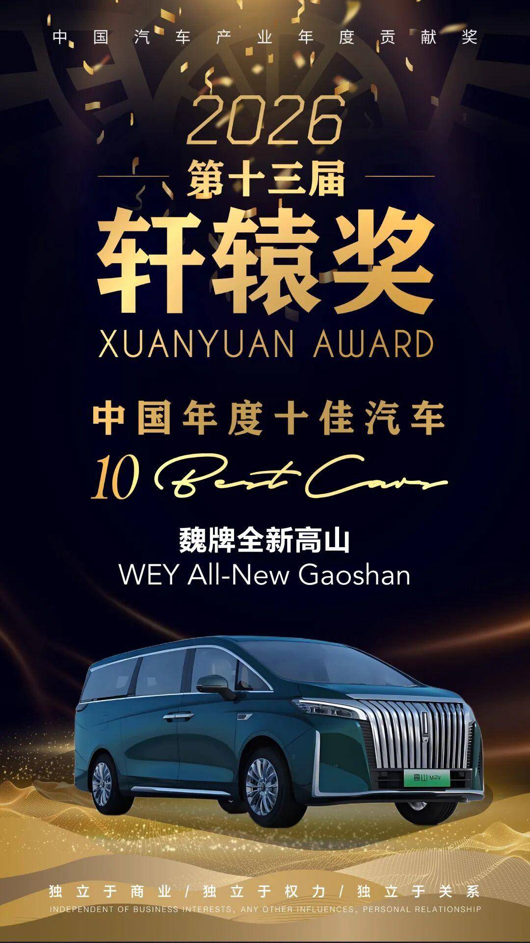 获奖理由:魏牌全新高山凭借精致内饰、全座位均衡的宽敞空间与视野,搭配扎实底盘构建起坚实基础,再叠加同级罕见的智能四驱电混系统,在乘坐舒适性、动态操控与NVH表现上,跻身当今MPV市场领先水平。同时,魏牌全新高山又罕见地拥有均衡可靠的组合辅助驾驶能力,兼顾效率与安全性,稳居行业第一梯队。