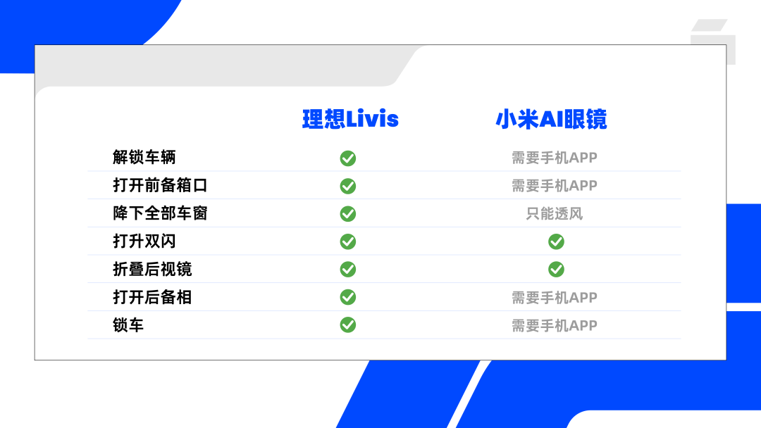 与此同时,在相同指令下,两者的理解会存在差异,例如“降下全部车窗”,Livis会全降四窗,小米AI眼镜则仅降下四个车窗的一部分,有点类似通风模式。
