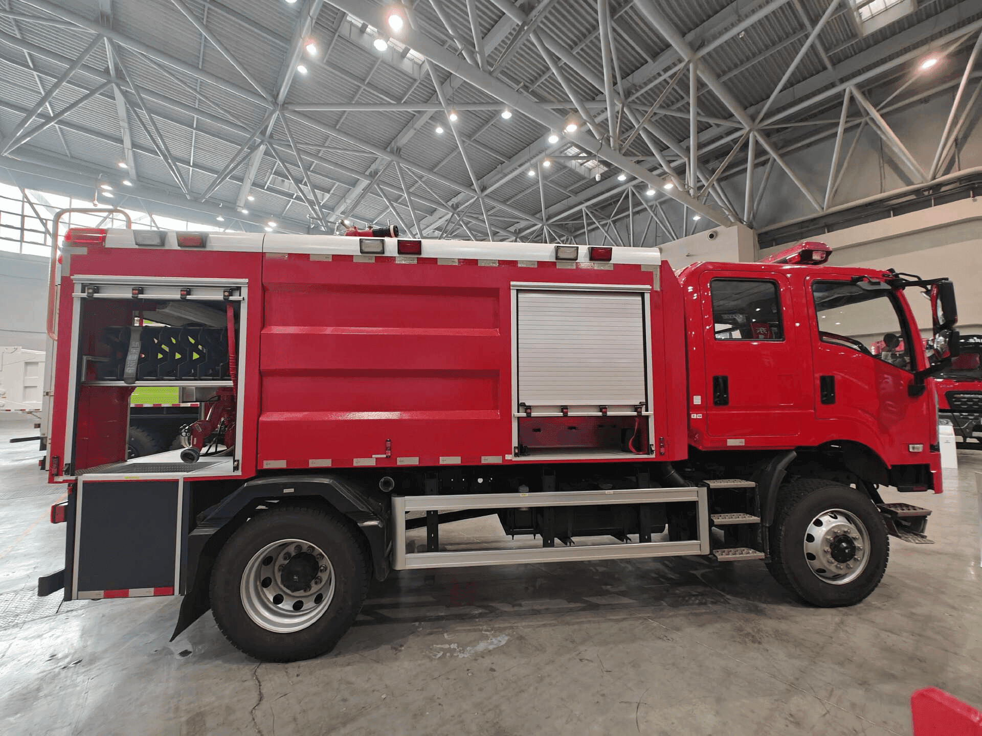 整车通过性能出众,最小离地间隙235mm,最大爬坡度50%,接近角33°,离去角38°,转弯半径小,能够快速抵达各类复杂地形的救援现场。