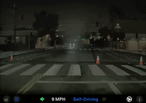 例如,当红绿灯关闭,FSD在需要左转而正前方又有直行车辆时,它按照前述的加州驾驶员手册第34页所写的规则,先是在路口停下,然后趁直行车辆还没达到路口,一气呵成地完成左转。