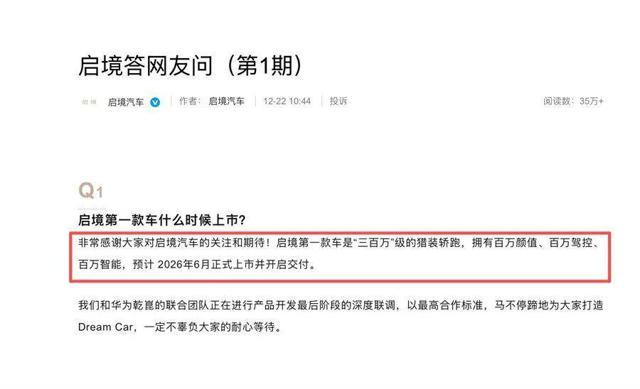 更令人意外的是,这个时代,“灵魂”的价值可能已经远远超过了“躯体”。12月22日,广汽、华为联手打造的启境汽车,在官方微博发布了答网友问(第1期),其中一个跟重要的信息是: