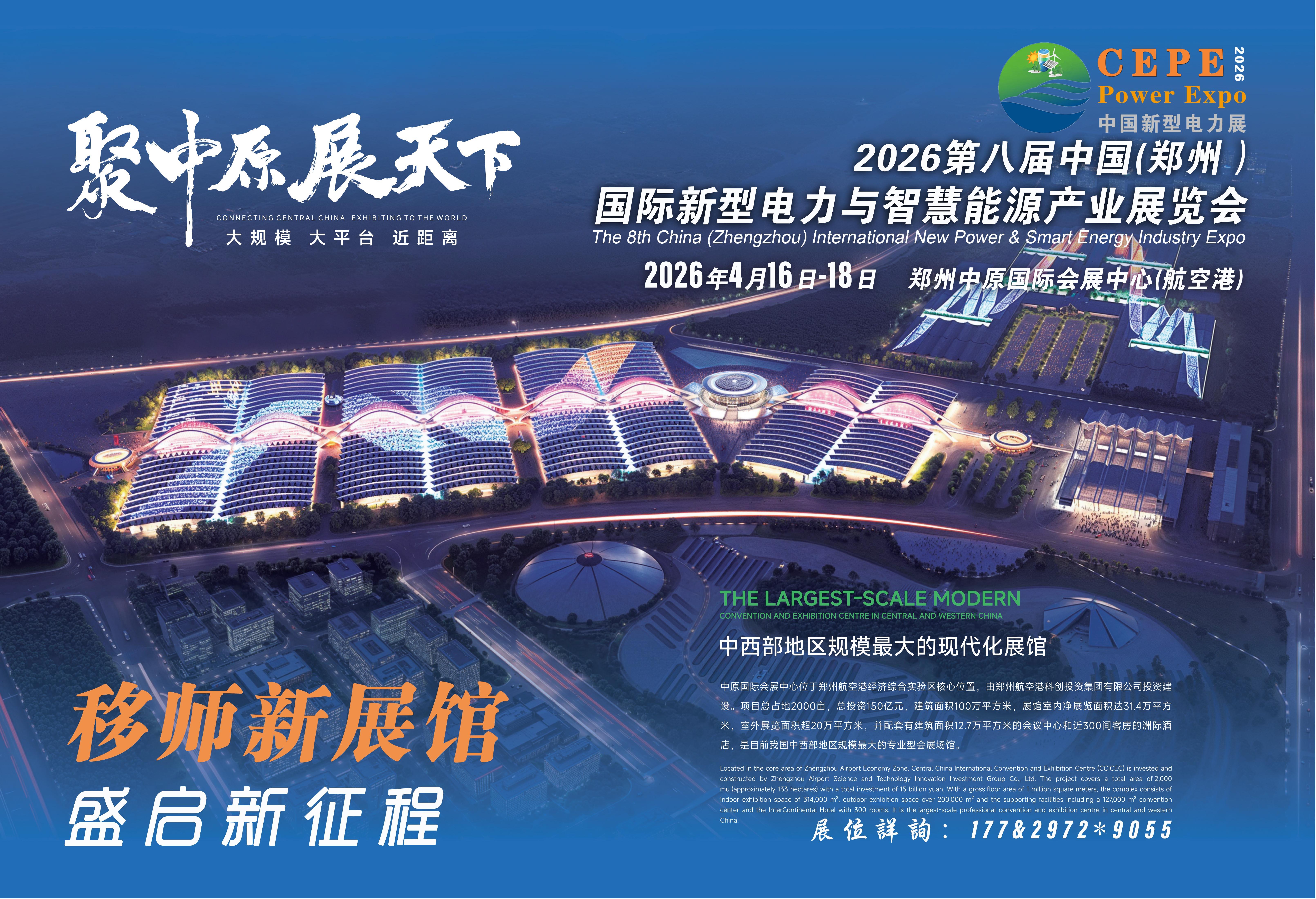 “CEPE第八届中国(郑州)国际新型电力与智慧能源产业展览会”是新型电力系统行业例会,目前已成为一年一度的中部六省电力行业大会。为提升展会档次及办展规模2026年4月16日-18日将移师至“亚洲第五大展馆”郑州航空港中原国际会展中心举行,本届展会规划4大展厅、规模40,000㎡展示面积,预计吸引来自全球600余家展商集中亮相中原,参观采购商预计在50,000余人次。在此,我们诚邀海内外新型电力行业全产业链企业参观、参展,共享中原盛会!