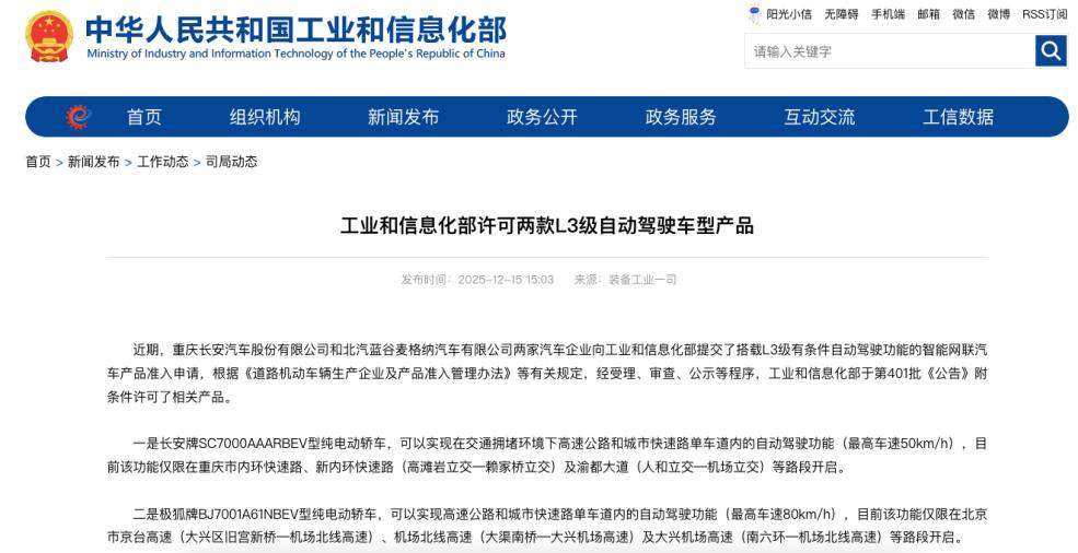 就在一周前的12月15日,该车型刚刚获得工信部L3级产品准入许可。仅隔7天,自动驾驶专用正式号牌顺利上车,意味着“产品准入”与“上路通行”两大核心环节高效衔接,也体现了我国智能网联汽车管理体系已实现协同运作,步入成熟轨道。