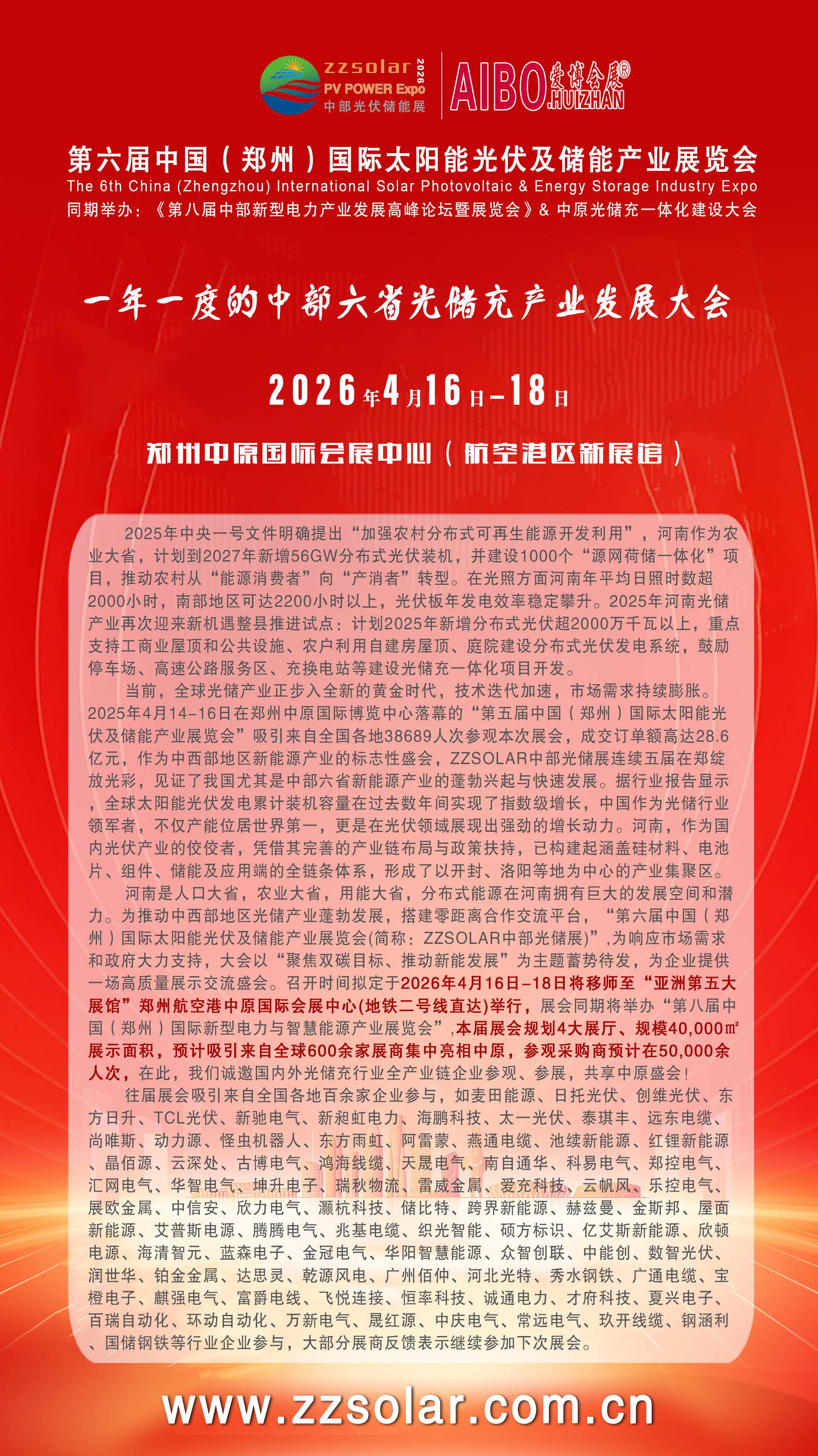 当全球能源结构转型的浪潮席卷中原大地,一场关于绿色未来的产业盛宴正在郑州酝酿。2026年4月16日至18日,中原国际会展中心(郑州航空港区新展馆)将化身成为光伏储能行业的超级秀场,这里不仅汇聚了来自全球顶尖企业的前沿技术,更蕴藏着价值千亿的产业机遇。据行业权威数据显示,中国光伏装机容量已连续八年位居全球首位,而河南作为中部地区新能源产业枢纽,其分布式光伏装机增速去年更是达到惊人的47%。在这个被称为"光伏储能行业风向标"的舞台上,每个展位都是通向市场的黄金通道。